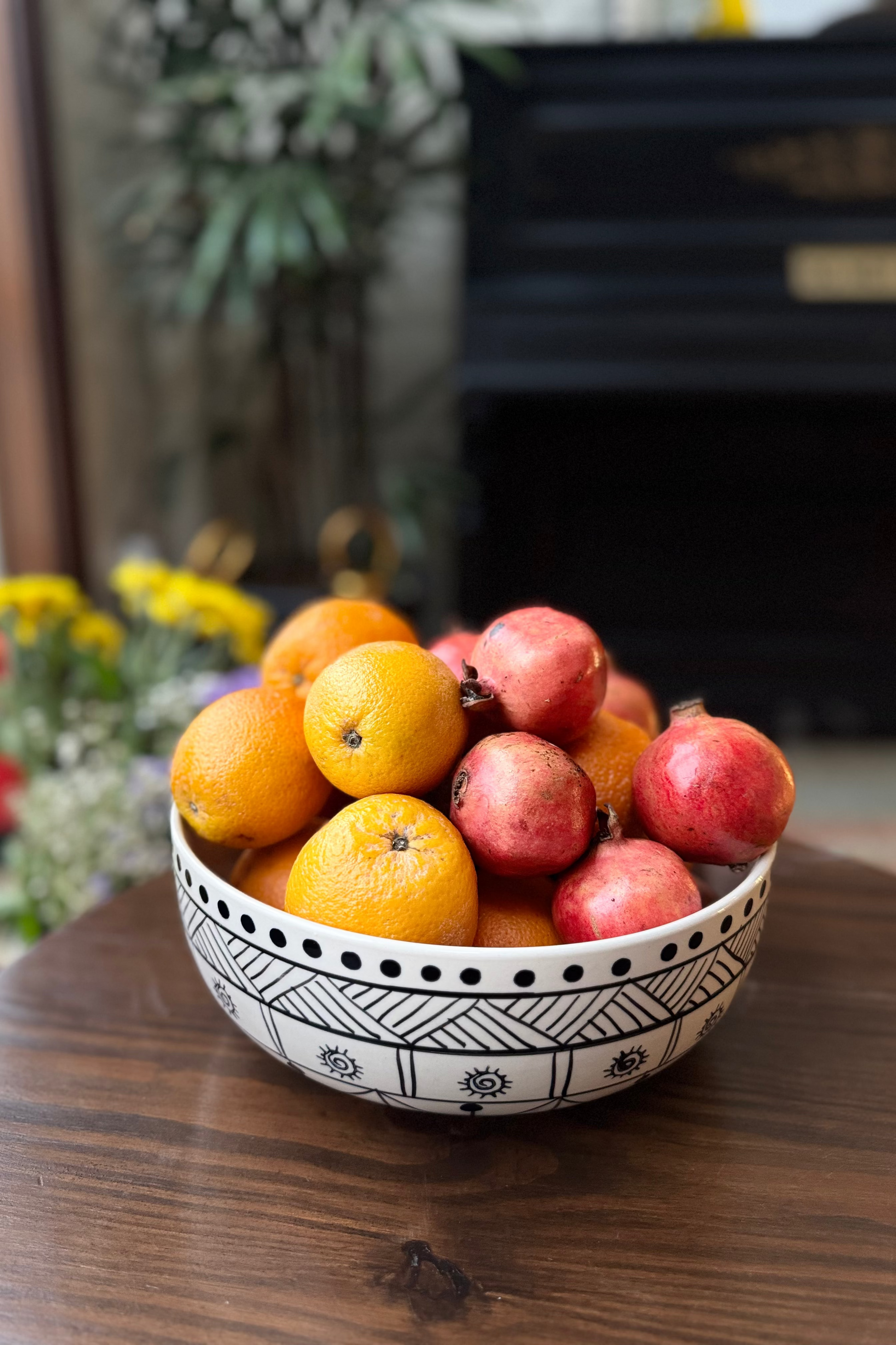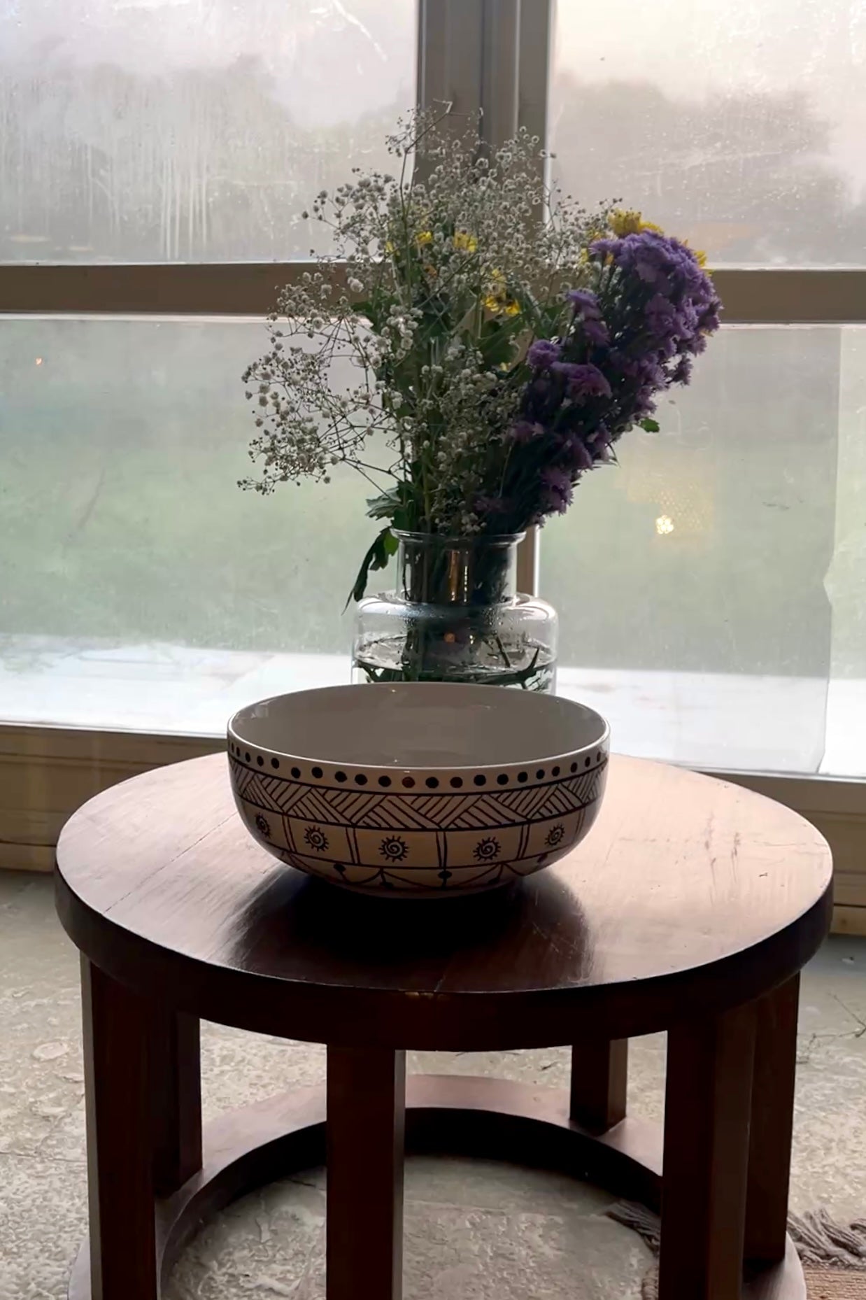 Rooted in tradition and styled for the present, the Linea Bowl features hand-painted geometric and linear detailing across its soft cream base, bringing a fresh, artisanal touch to your table. The generous size makes it ideal for serving chips, sandwiches, or even displaying your favourite fruits. A versatile essential for everyday meals and special gatherings alike.